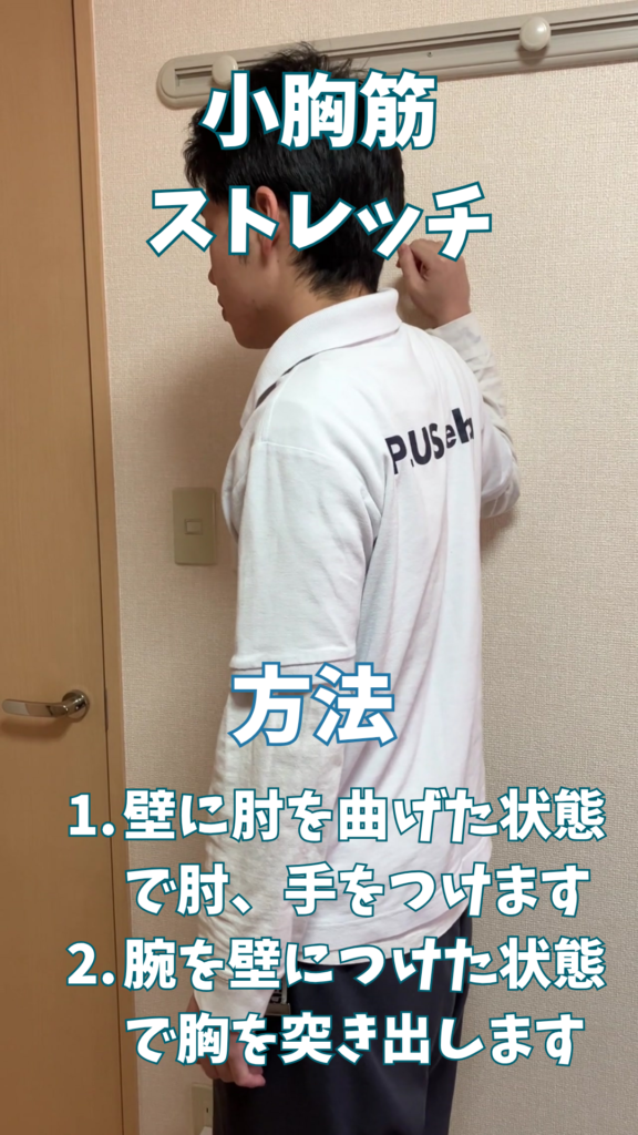 ① 小胸筋ストレッチ