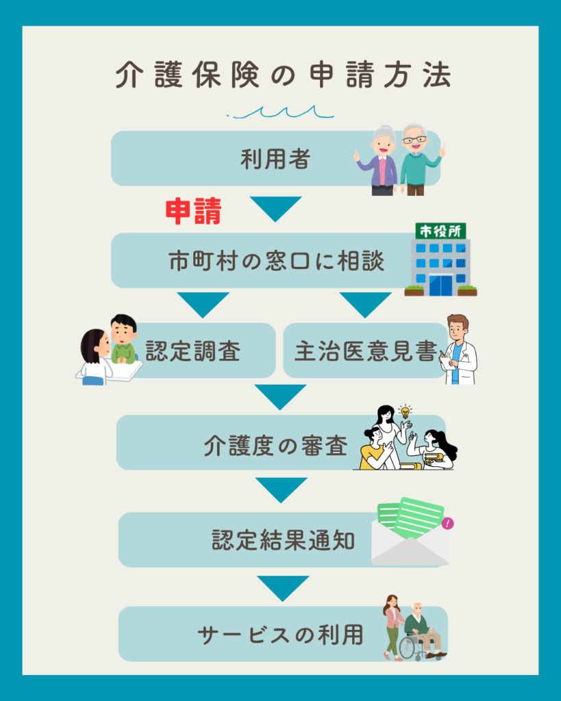 そのため、まずはお住まいの市区町村の介護保険担当窓口で申請する必要があります。