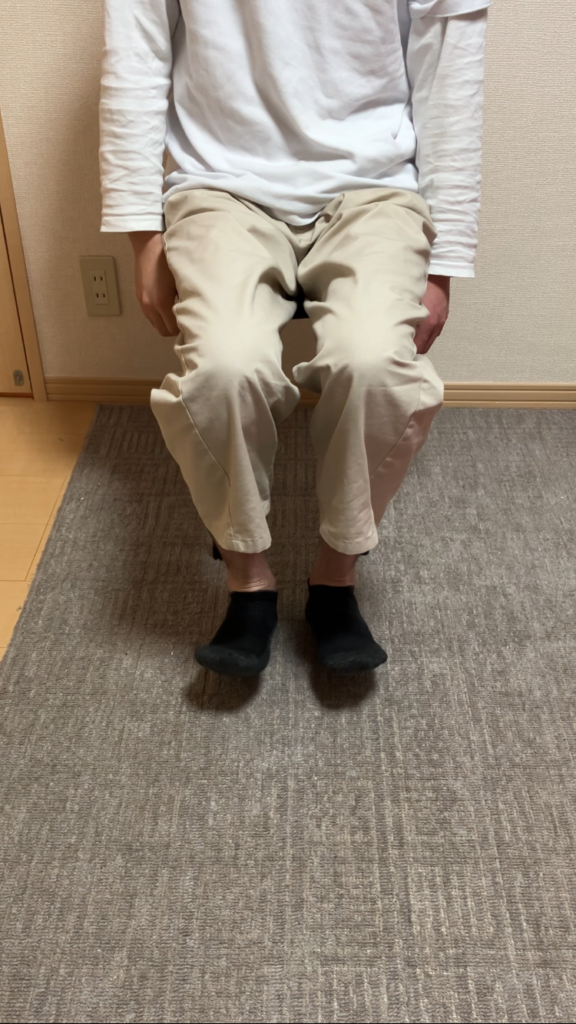 - 背筋を伸ばしたまま、膝をゆっくり伸ばしていきます