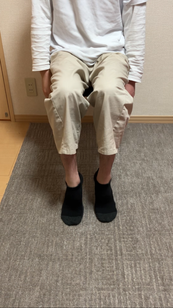 - 背筋を伸ばし、膝をゆっくり曲げていきます